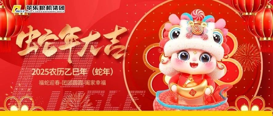 灵蛇纳福,新岁已至,新年的画卷在爆竹声声里徐徐展开。值此新春佳节来临之际,苹乐粮机集团祝您“苹”安快“乐” 阖家幸福 万事如意!