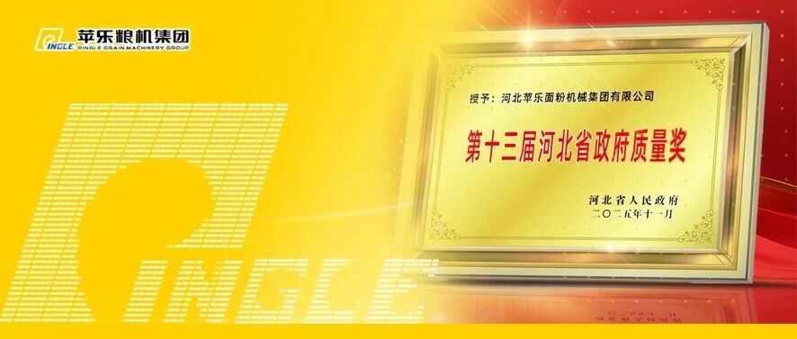 喜报!苹乐粮机集团再获殊荣 荣膺第十三届河北省政府质量奖